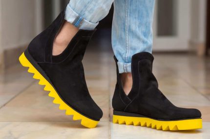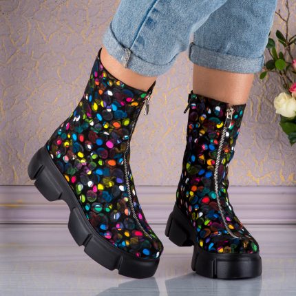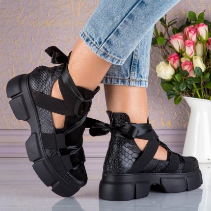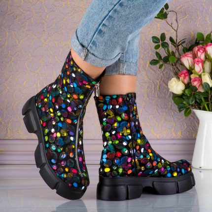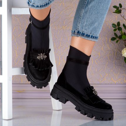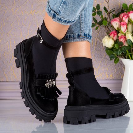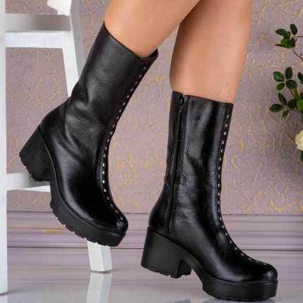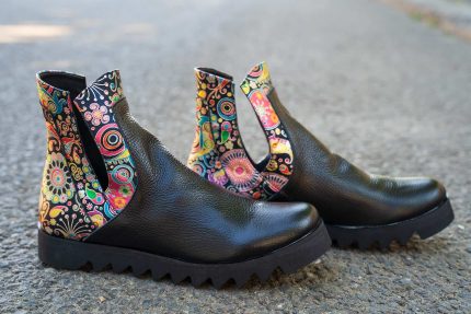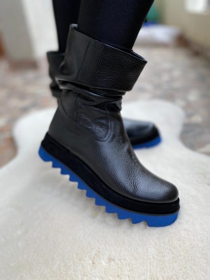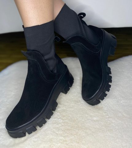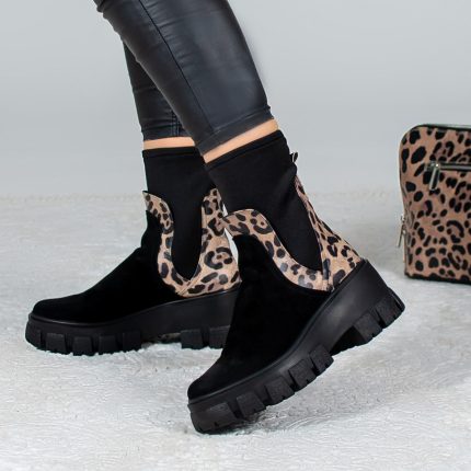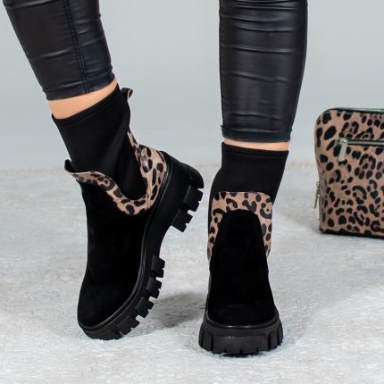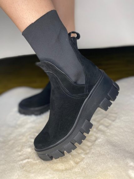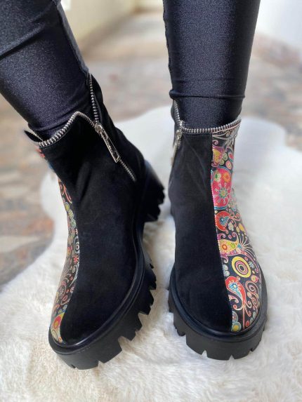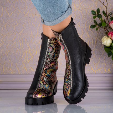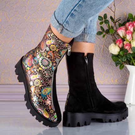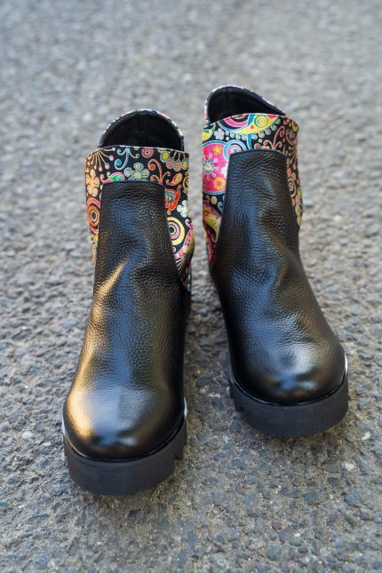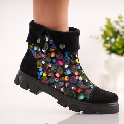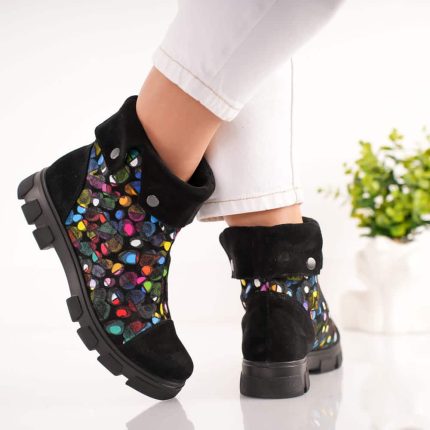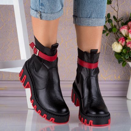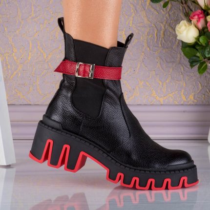 Ghete Black & Red Polinski din piele naturala intoarsa