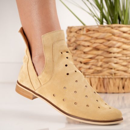 Ghete Arrow cu detalii perforate din piele naturala intoarsa