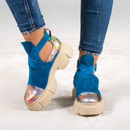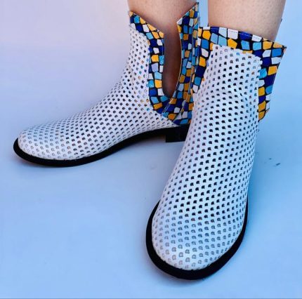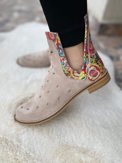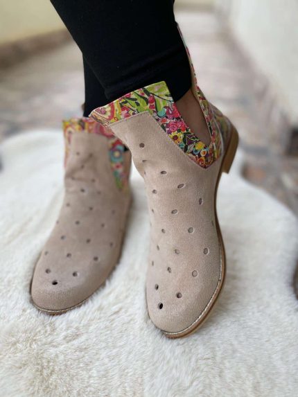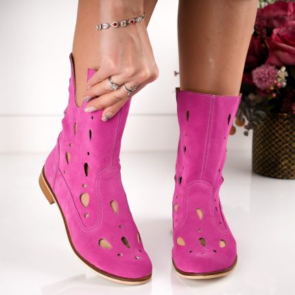 Ghete Belle Fuchsia cu detalii perforate din piele naturala intoarsa