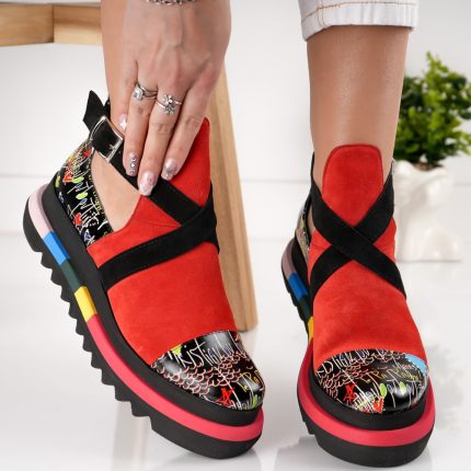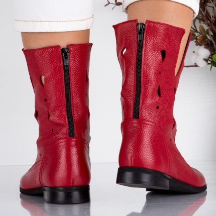 Ghete Rossa cu detalii perforate din piele naturala intoarsa