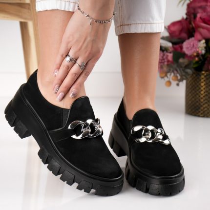Pantofi dama Noir din piele naturala intoarsa