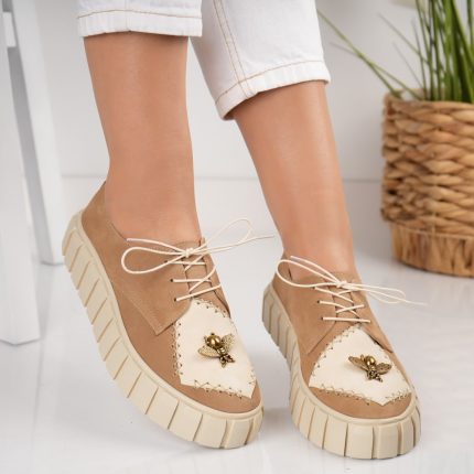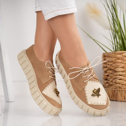 Pantofi dama Beige Bee din piele naturala intoarsa
