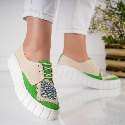 Pantofi de dama Green Flower cu detalii metalice si ciucuri din piele naturala