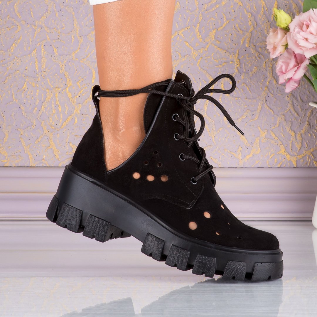 Bocanci de dama Bella Dark din piele naturala cu perforatii