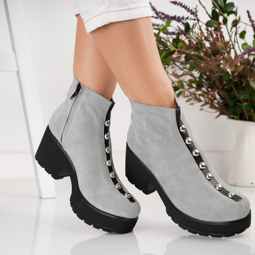 Ghete Felicita gri cu detalii argintii
