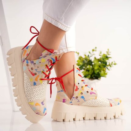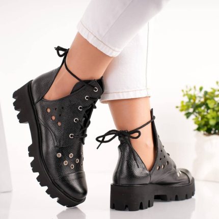 Bocanci de piele Bright cu detalii perforate din piele naturala