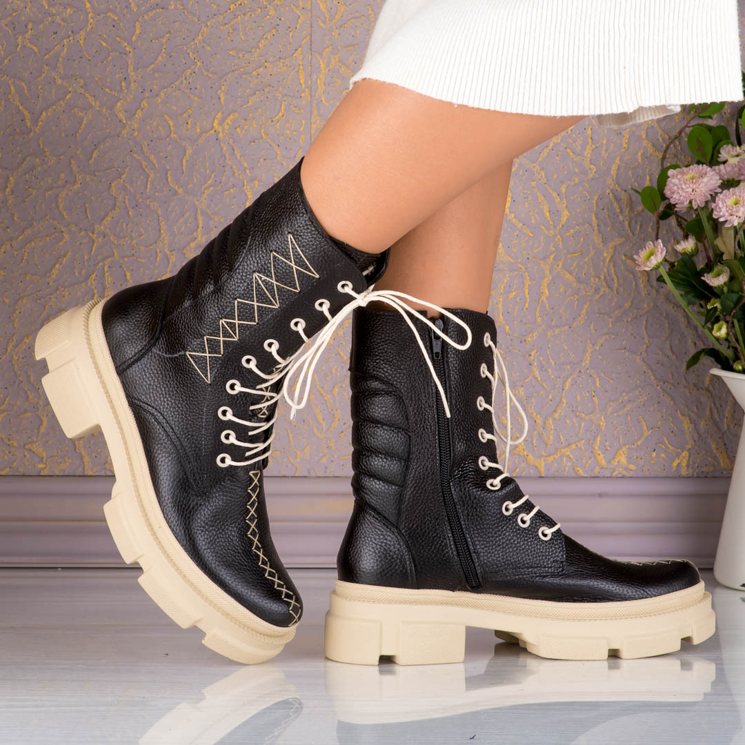 – Exteriorul si interiorul este din piele naturala, iar talpa din inlocuitor