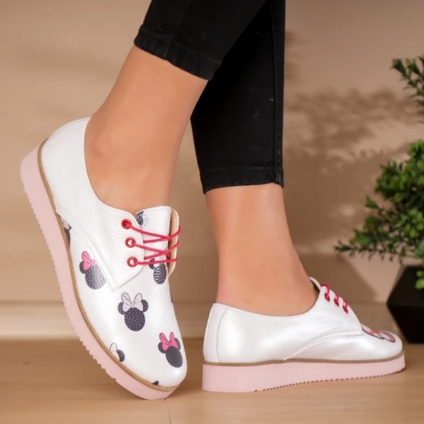Pantofi piele naturală alb perlat Minnie