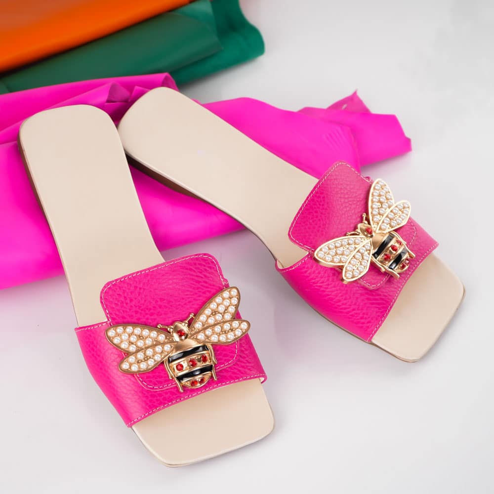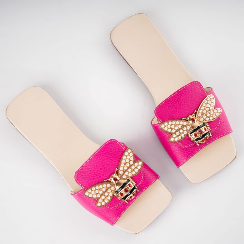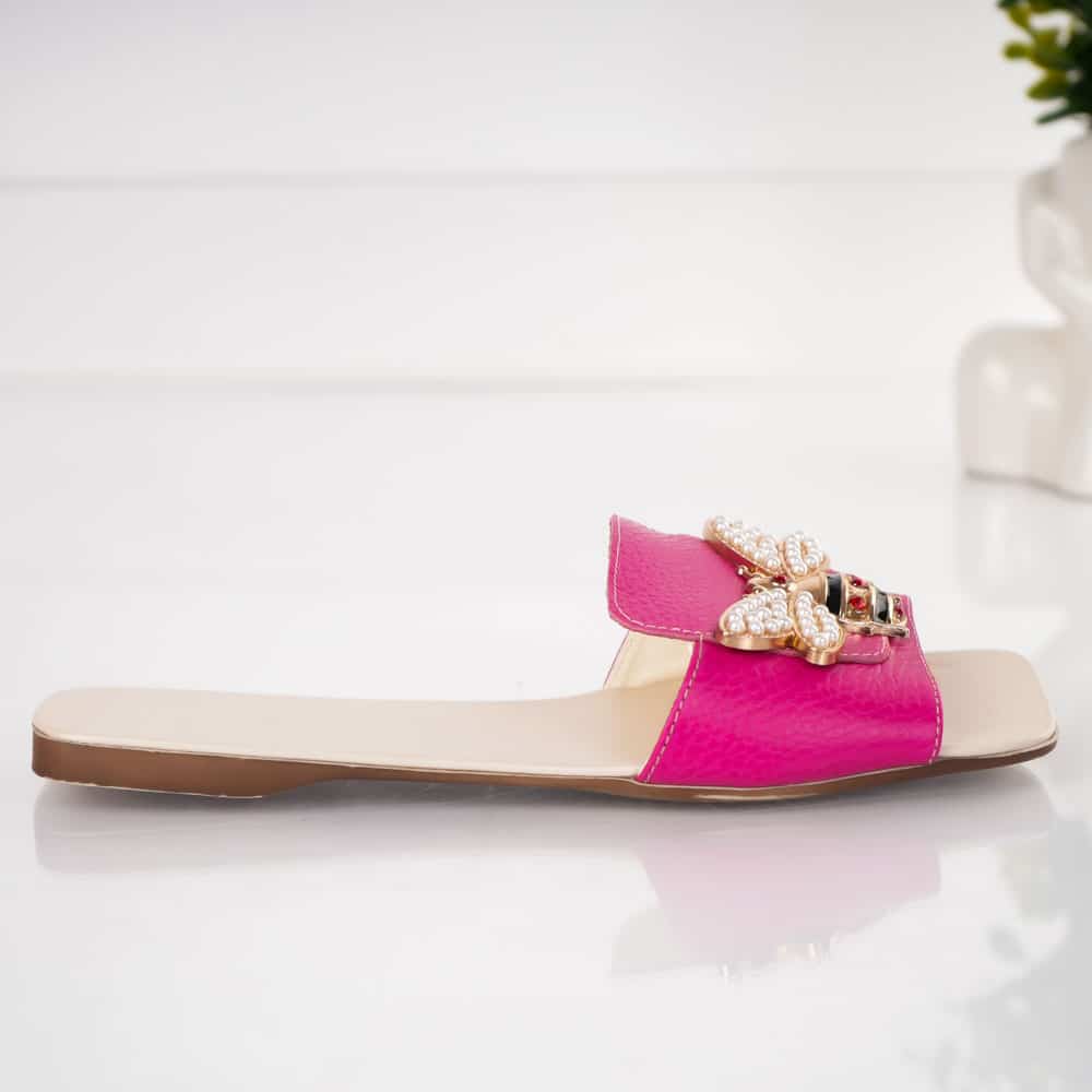 Papuci de piele Pink Bee piele naturala
