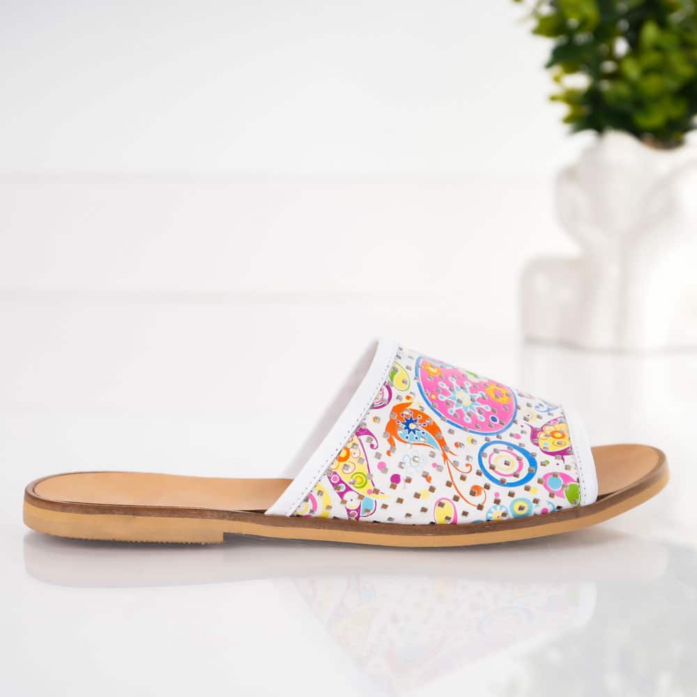 Papuci de piele Serpenti Dark cu accesoriu rotund